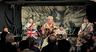 | 2018年5月12日、北沢タウンホールにて、11バンド中9番目に登場。後期の4曲を演奏、拍手をいただく。最後は、All you need is LOVE大合唱。 | ![]() |